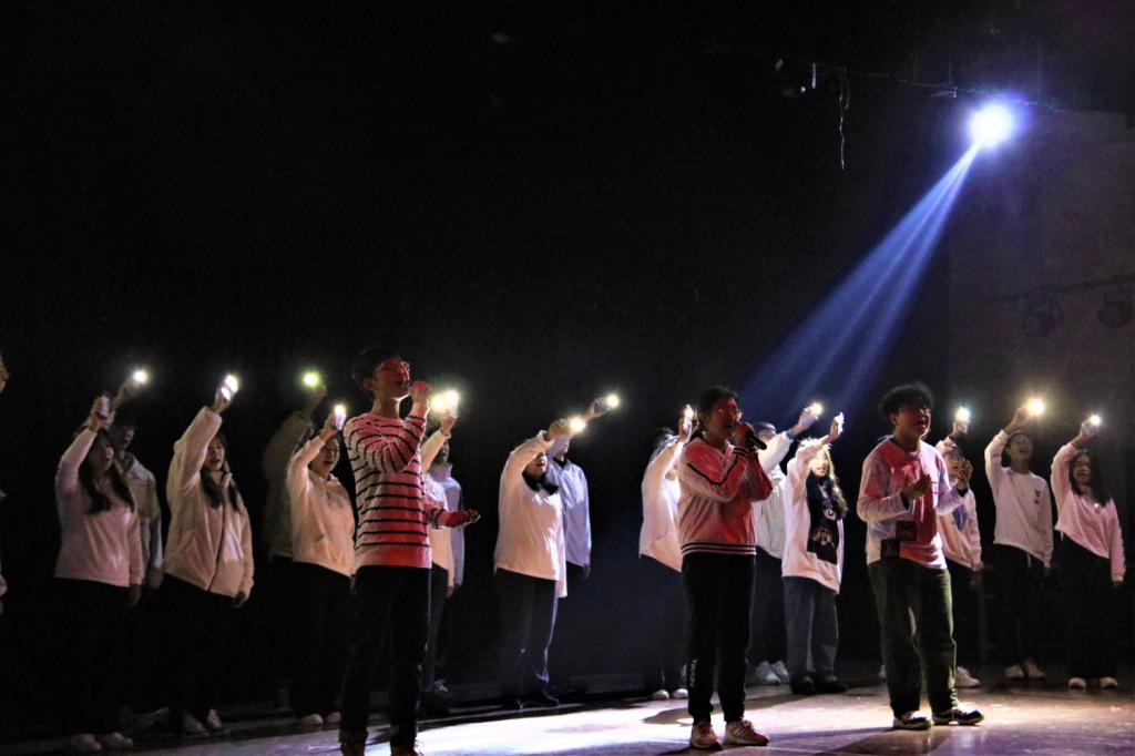 演出过半,同学们意犹未尽。此时,环工1班两位同学带来了相声《吹牛》,诙谐的语句和不时抖落的“包袱”,让同学们捧腹大笑,现场的气氛更加活跃起来;环生3班富有创意的光影剧《与青春不止遇见》演绎了从高中到大学的时光剪影,生动地描绘了同学们挥别高中、踏入大学的忐忑与期待;熟悉的音乐搭配富含乐趣的舞蹈动作,将同学们带回无忧无虑的童年;环生3班甘其隆同学深情演唱的《意外》搏得全场掌声与欢呼。