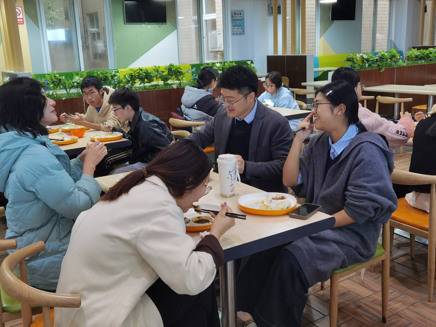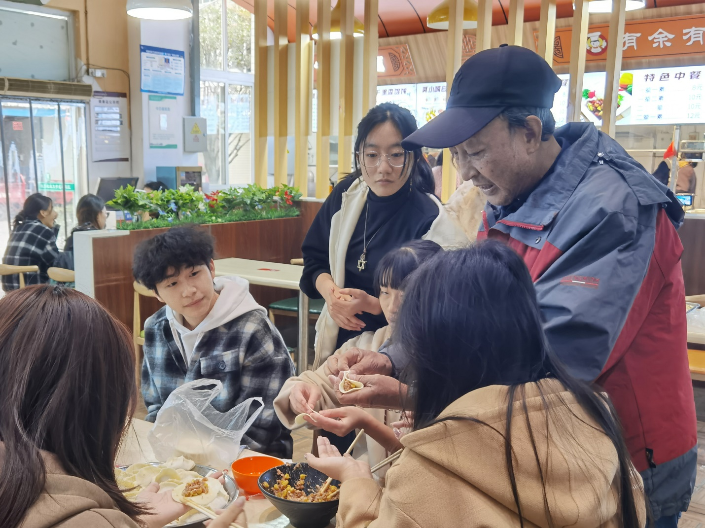 座谈活动结束后,领导、老师与同学们一起包饺子、唠家常。在包饺子的过程中,大家团结协作,欢笑比拼劳动技能。有的人包出了漂亮的褶子,有的人则尝试了各种不同的形状。每当有人包出一个特别的饺子时,都会引来一阵欢笑和赞叹。同时,大家也借此机会交流起了生活趣事和成长心得,分享着彼此的故事和感受。不久,一盘盘热气腾腾的饺子便摆满了餐桌,大家围坐一圈,品尝着自己劳动的果实,感受着来自学院大家庭的温暖与关怀。