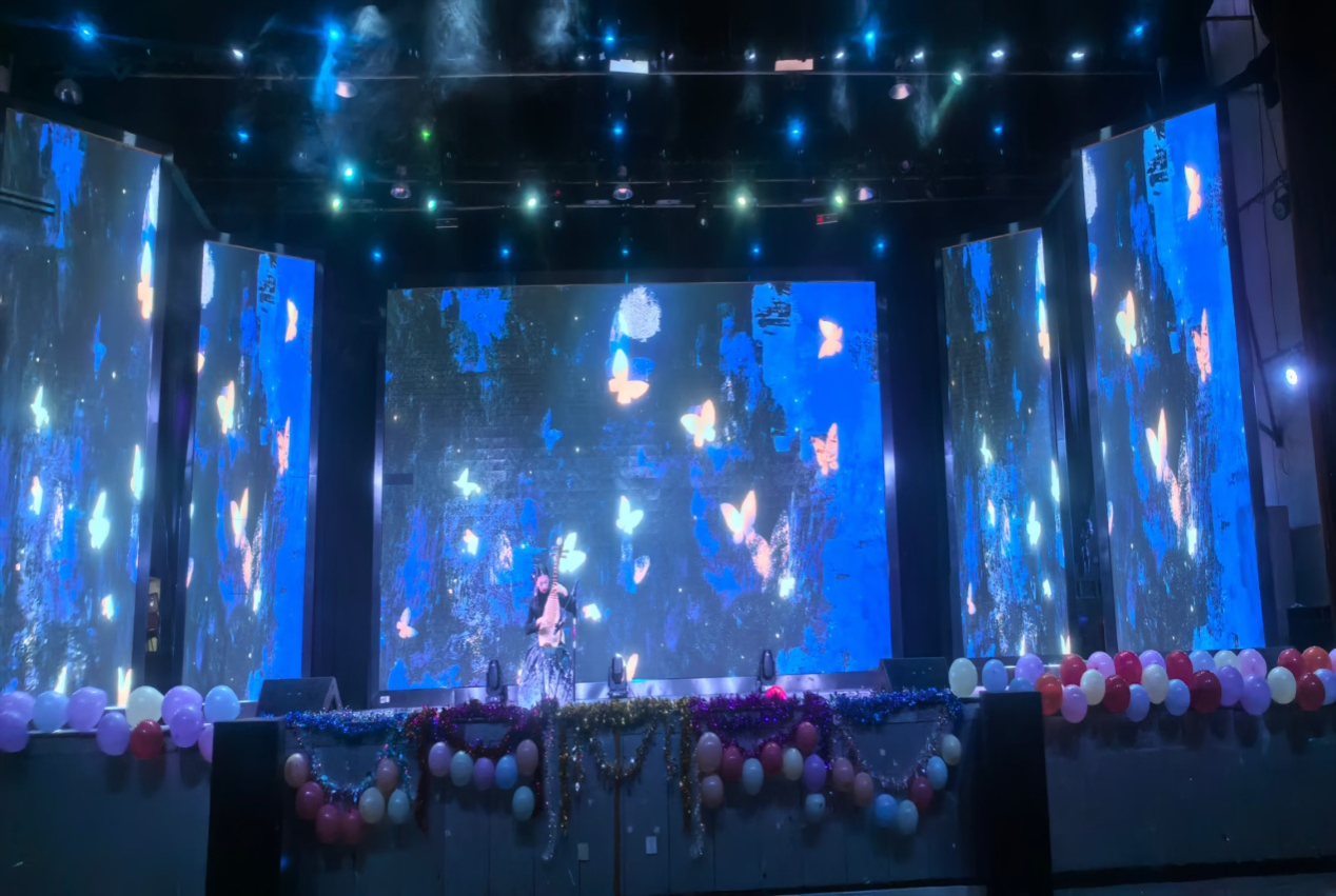 决赛节目形式多样,包含歌唱、舞蹈、乐器演奏、相声等,参赛选手们各展所长,为观众呈现了一场精彩纷呈的视听盛宴。大赛在一支傣族舞的优美旋律中启幕,舞者们轻盈的身姿与灵动的舞步瞬间点燃了现场的氛围。随后,一曲《背对背拥抱》深情响起,舞台上搭档们虽未实际相拥,但那份默契与情感却仿佛跨越了空间,深深触动了观众的心弦。而当《再别康桥》熟悉旋律响起,不仅唤起了大家对于高中时代的美好回忆,更在舞台上演绎出了一幅幅动人的画面。一曲琵琶独奏更是将现场氛围推向了新的高潮,指尖与琴弦的每一次碰撞都仿佛有蝴蝶翩翩起舞,让人陶醉其中。而《少年中国说》的情景演绎,则让观众仿佛穿越时空,亲身感受到了那份拳拳爱国心与少年强则国强的豪情壮志。最后,环境学院文娱部带来的《朝花童心,夕拾乐园》节目,以一首首耳熟能详的动画片歌曲串联起了我们对童年的美好回忆,同时也展望了更加美好的未来。