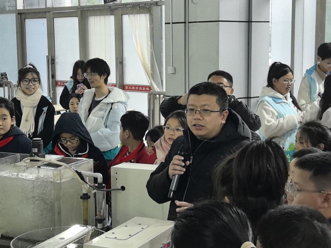 接下来的行程中,学生们走进了环境学院的实验室。从废物发酵再生土实验装置到污水处理再利用模拟装置,每一处都充满了科学氛围。李远伟副教授、李黎副教授、王肖静老师耐心地向学生们介绍了最新的农业环境领域科研成果,如智能灌溉系统、有机生物土壤改良技术等,让孩子们近距离感受到了现代农业科技的神奇与力量。