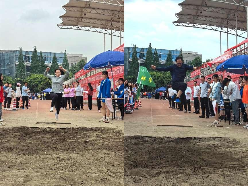男子跳远比赛现场气氛紧张而热烈,程章老师站在起跑线上,目光坚定,他深吸一口气,助跑、加速、起跳,一系列动作连贯而流畅,最终以4.42米的成绩获得第四名。而在女子跳远比赛中,彭宏老师身姿矫健,凭借着扎实的基本功和出色的临场发挥,跳出了3.17米的好成绩,获得了第五名。两位老师在起跳瞬间,都展现出了对自我极限的无畏挑战和对胜利的炽热渴望,他们用行动诠释了“更高、更快、更强”的体育追求。