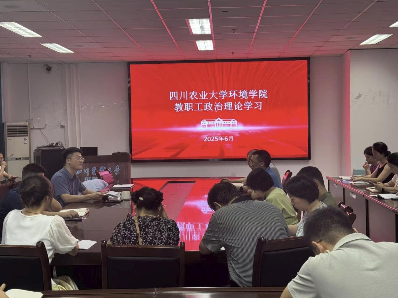 6月17日下午,环境学院于3教423B召开教职工政治理论学习会议。会议由学院党委书记黄成毅主持,全体教职工参会。