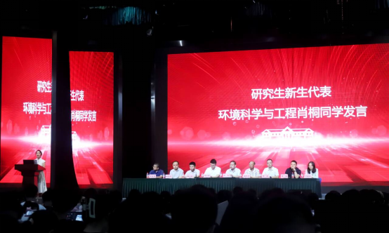 教师代表赵丽副教授结合教学实践,为新生分享了学习规划与专业发展方向的建议,助力新生明确成长方向。随后,学生代表们依次发言,高年级学生代表王玺同学分享了学习方法心得,为新生提供实用的学习策略与可供参考的学习经验;本科新生代表曾国富同学则表达了初入学院的期待,分享其对学校的初印象及从高中跨越到大学的心态转变;最后,研究生新生代表肖桐同学结合本科四年在环境学院的经历,为同学们传递成长经验,建议学弟学妹保持求知欲,鼓励同学们在未来的四年里勇于探索,成就自己的人生华章。
