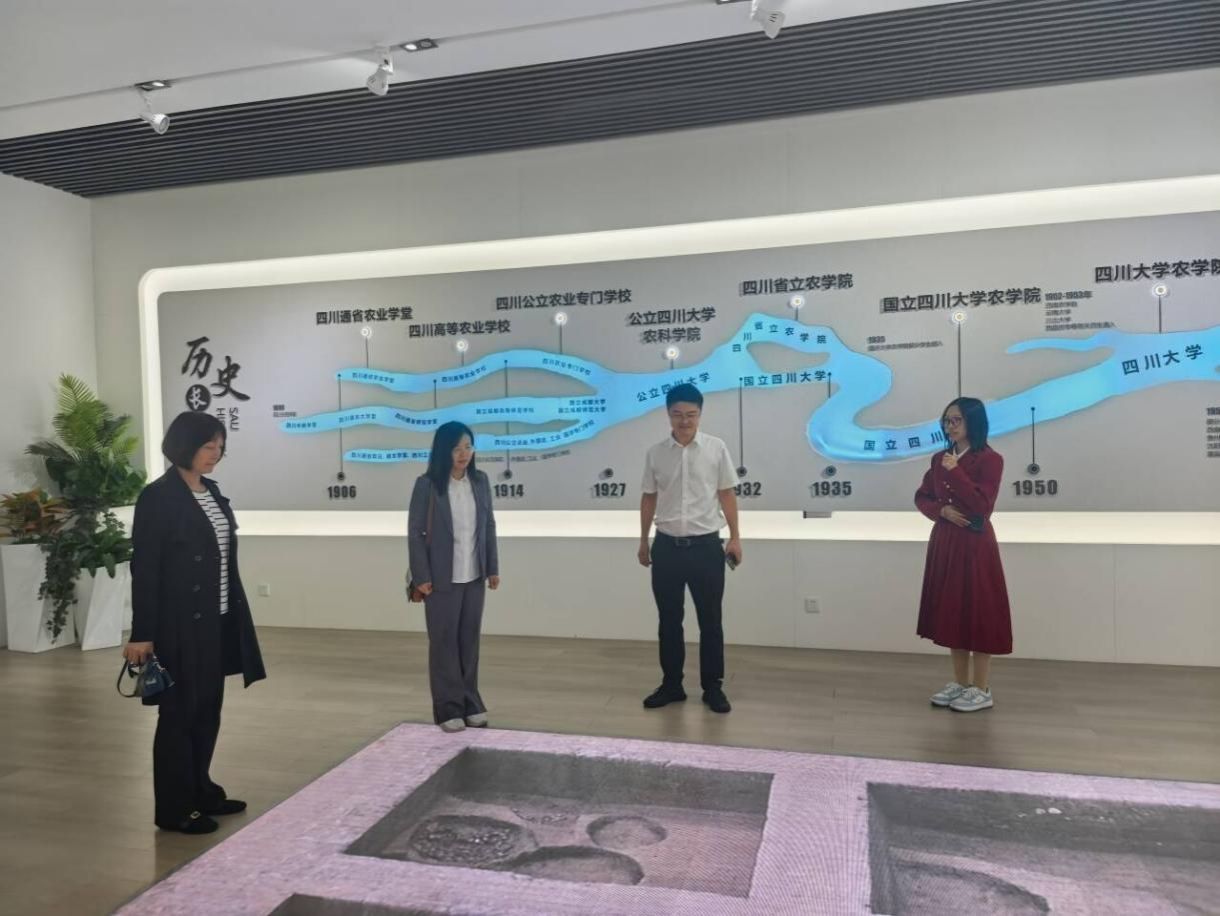 在黄成毅书记的陪同下,吉林农业大学资源与环境学院一行首先参观了我校校史馆。在讲解员的细致引导下,通过馆内陈列的珍贵史料、实物展品及动态影像资料,到访嘉宾全面了解了tyc5997太阳集团百余年的办学历史、深厚的文脉传承、学科布局的发展历程及重大办学成果,对我校厚重的办学底蕴与近年来取得的发展成就形成了直观且深刻的认知。