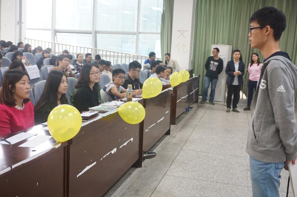本次答辩共有11个团支部参加。在播放完精心准备的开场视频后,本次答辩正式开始,在主持人的引导下,各个支部就已开展的团日活动有条不紊地进行答辩。在答辩过程中,各小班紧扣“青春圆梦,环境同行”的主题,从前期准备到团日活动的展开做了充分的介绍并表达了对于此次团日活动的感想与启示。许多小班还增加了互动环节:一些小班齐喊口号;一些小班拿出宣传团日活动时的签名横幅、海报、书签、穿废旧物品制作的衣服走秀。这些形式都突出表现出了各个班级的团结性。最终,经过激烈的角逐,环境工程14-2支部获得此次团日活动创意大赛一等奖。