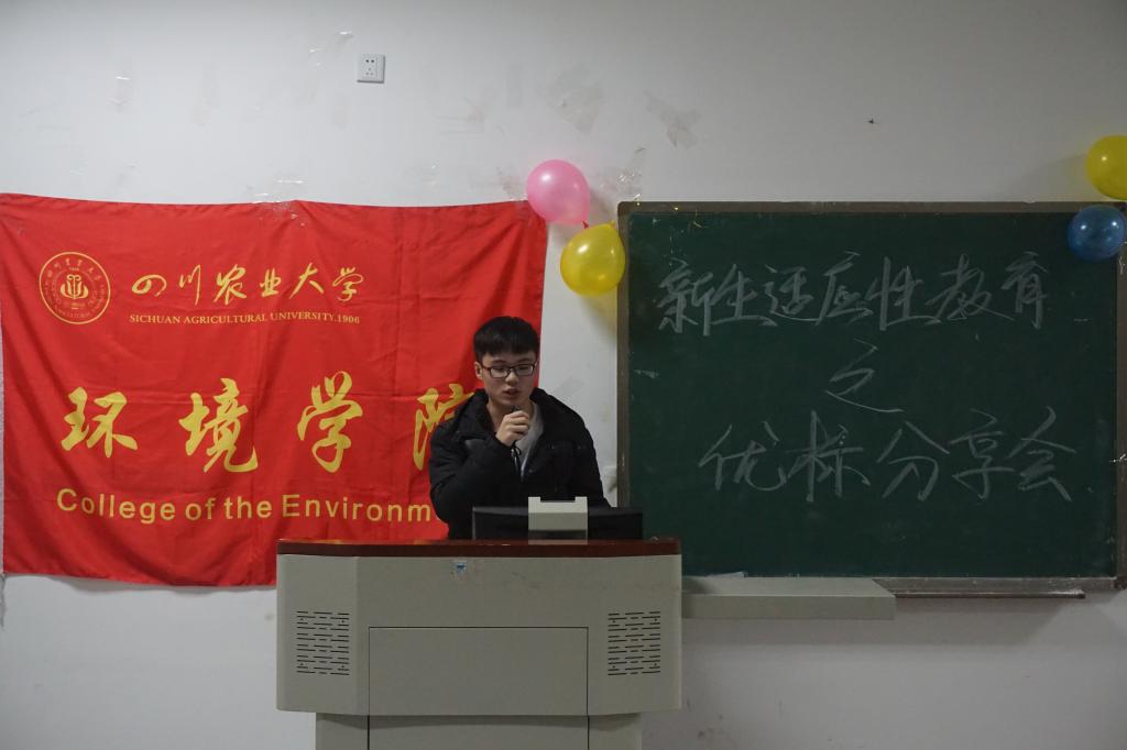 12月6日晚,环境学院在4A-106举办了新生适应性教育之优标分享会。优秀学生标兵董祝君、邵帅、刘雪颖、胡灿为学生们做了经验分享,学院234名新生到场观摩学习。