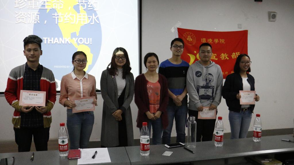 为响应环境保护部宣传教育中心主办的“清洁节水青春行”全国高校节水宣传活动的号召,4月15日16:30,由环境学院团委宣教部举办的环境学院第一届“节约用水,珍惜生存环境”主题演讲比赛于4教B-306拉开帷幕。党委办公室主任兼团委书记杨娟,党委办公室张宇老师和部分学生干部出席此次活动并担任评委。