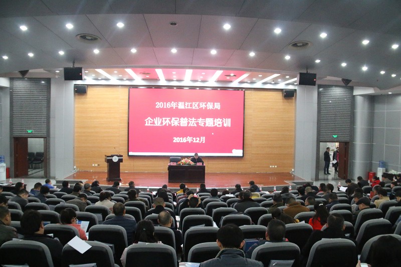 温江区环境保护局局长柯震弟在培训前就国家整体形势和温江区环保工作的紧迫性、重要性、严肃性做了强调,要求各企业认真学校环保法律法规,严格做好各自环保达标,为五城温江建设做贡献。