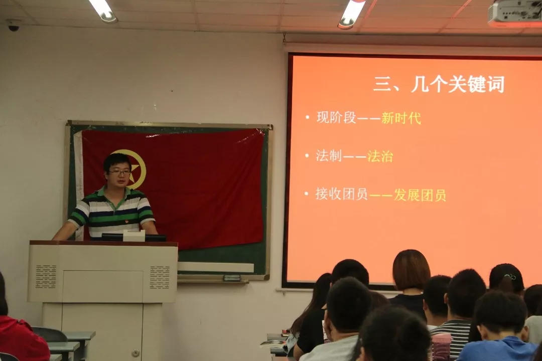 随后,学生团委副书记林丰解读了《中国共产主义青年团团章(修订案)》。将习近平新时代中国特色社会主义思想同马克思列宁主义、毛泽东思想、邓小平理论、“三个代表’'重要思想、科学发展观一同确立为团的行动指南是团章修正案的最大亮点。