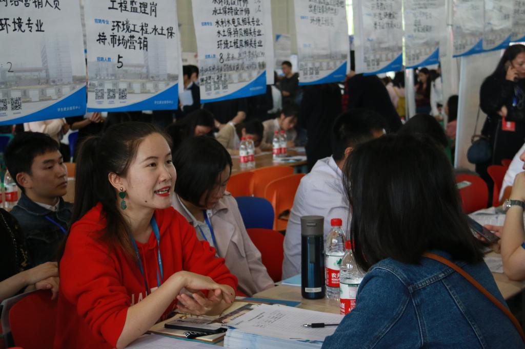 在双选会上,tyc5997太阳集团党委副书记张强也来到环境学院的应聘区,详细询问环境学院学生面试情况,来自环工的应届毕业生陈磊说道:“双选会是一个很好的机会用来锻炼自己,方便掌握一些求职技巧,为以后的面试积累经验。”来自环境生态工程的大三学生刘川源表示:“双选会对于大三的我们来说,更多的是为我们提供了一个提前了解就业环境和锻炼自我的机会。通过双选会去了解企业和我们会面对的工作环境,争取了一定的实习经验。这样才有利于我们在以后踏入社会后,更好更快的适应离开校园的变化。”