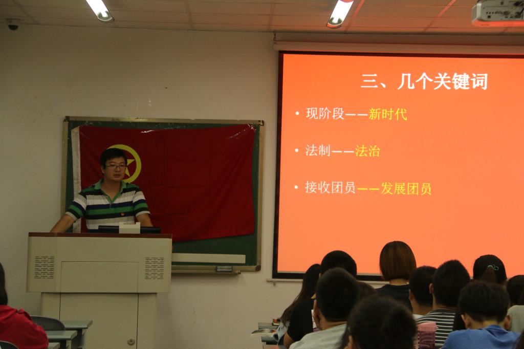 随后,学生团委副书记林丰解读了《中国共产主义青年团团章(修订案)》,将团章修正案重要部分进行了分析,并进一步学习了团的有关知识。