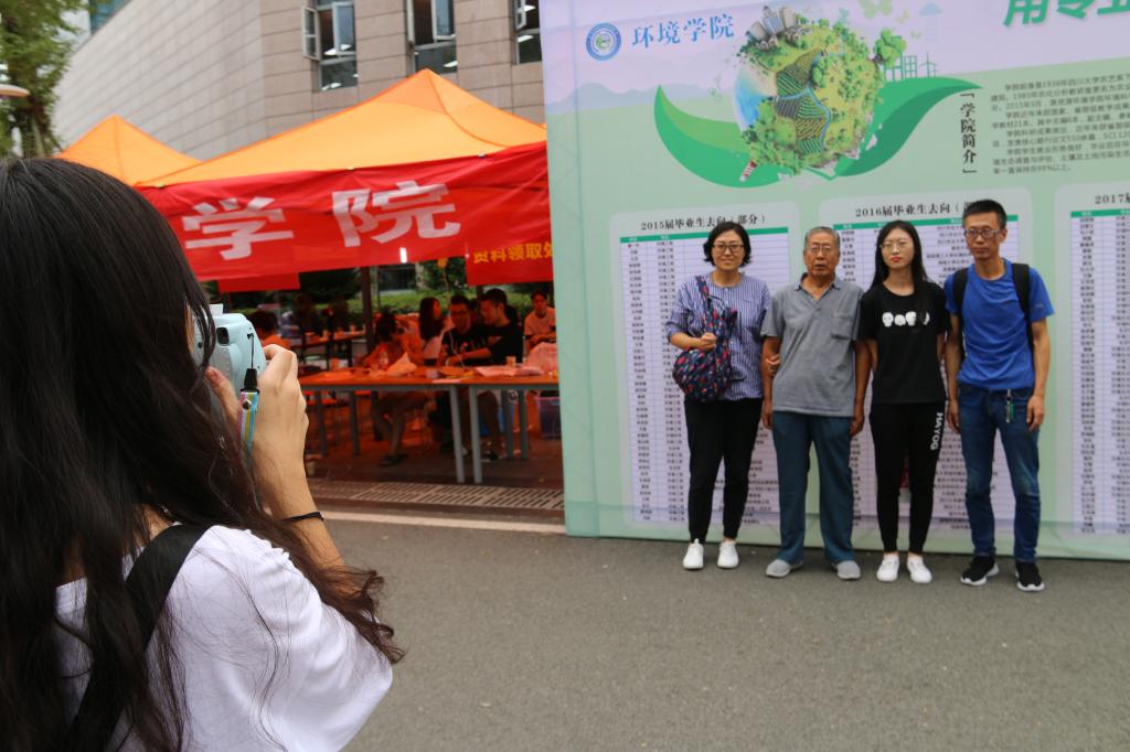 “在学院334名新生中,有不少爷爷奶奶一家三代人一起来校的,使用拍立得为他们留下大学第一帧的全家福,并交与家长,不仅可以留作下这有意义的瞬间,更像是一次成人礼。”环境学院党委办公室主任杨娟老师介绍使用拍立得的初衷。来自山西的环生1802班侯娜同学与其家人一起拍下这张照片后,家长们表示:“看着照片,终于意识到孩子已经长大了,需要学会独立,学会自己照顾自己了。”看着照片,新生们脸上的焦躁仿佛也少了些,更多的,是一种期待。环境科学1802班刘轲同学看着这些照片,表示这种形式不仅拍下了新生们进入校园的兴奋,也拍下了家长对孩子的一种期盼,渴望孩子在校园里得到成长,能在以后的生活里独立起来。
