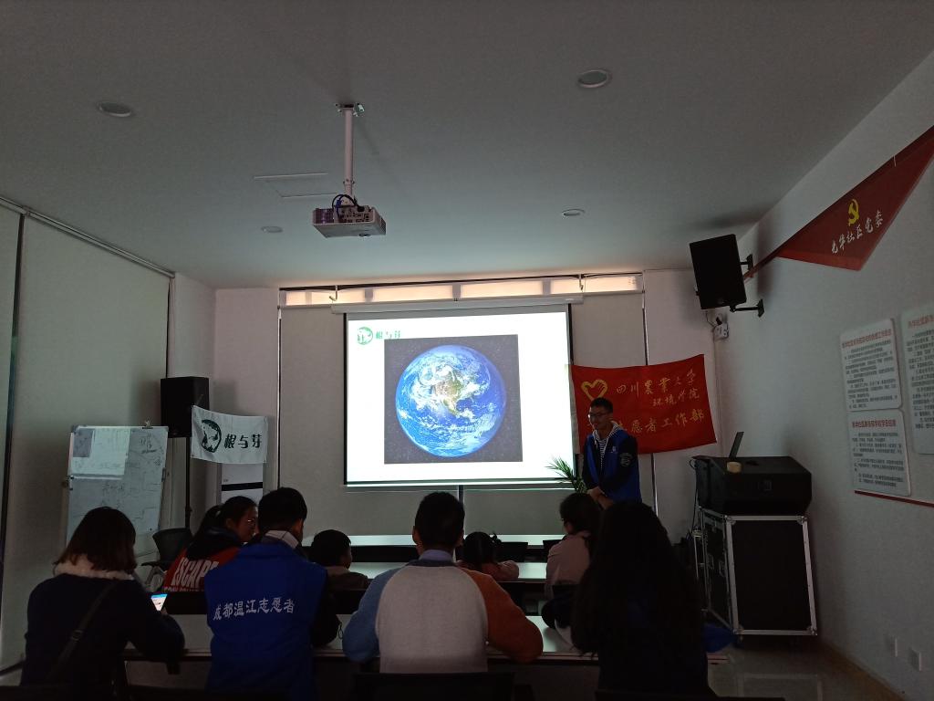 下午14点30分,大学生“讲师”们面向前来的家长和小朋友们在社区会议室开始了关于生态圈和生态系统主题的讲课。通过将地球比作人,岩石圈比作“皮肤”、水圈比作“血液”、生态系统比作其他“器官”,志愿者深入浅出、生动形象地介绍了地球上的4个生态系统及其重要性。小朋友们也都积极的举手回答问题并交流他们所知道的某个生态系统里的生物。