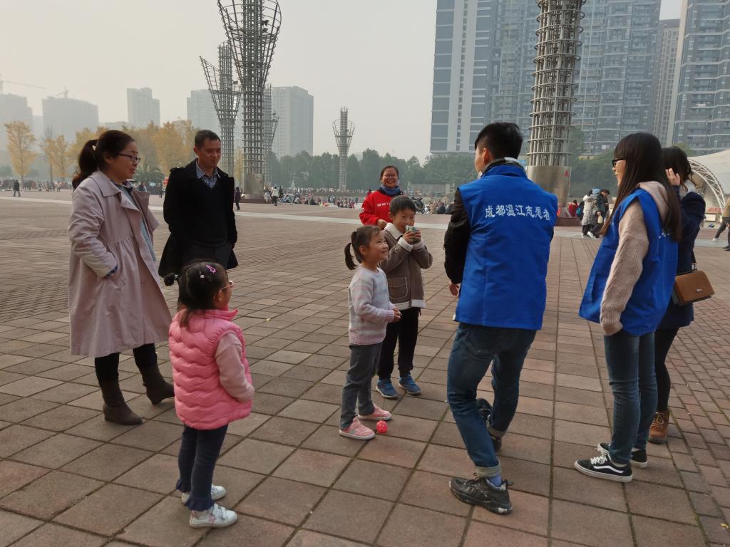 上午10点,同学们联合温江区光华社区在社区里进行了设点宣传。本次“生态+支教”的形式吸引了不少家长和小朋友的注意力,许多家长在耐心听完志愿者讲解活动内容后也纷纷表示支持。