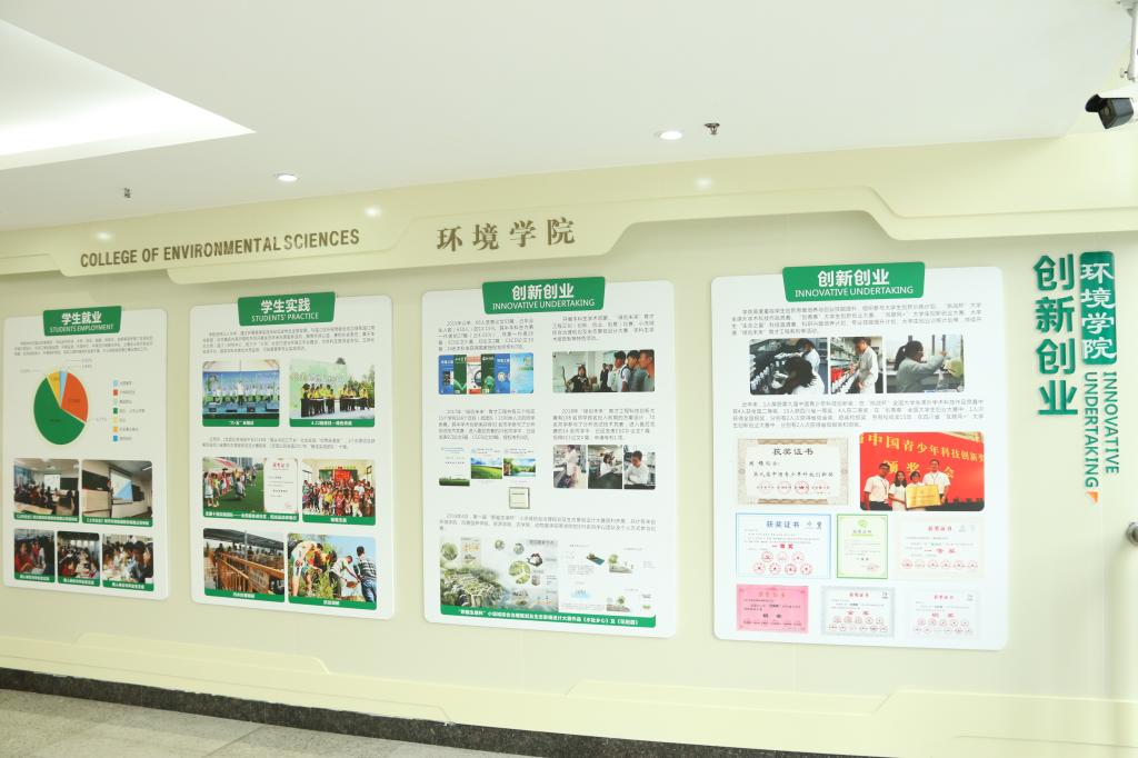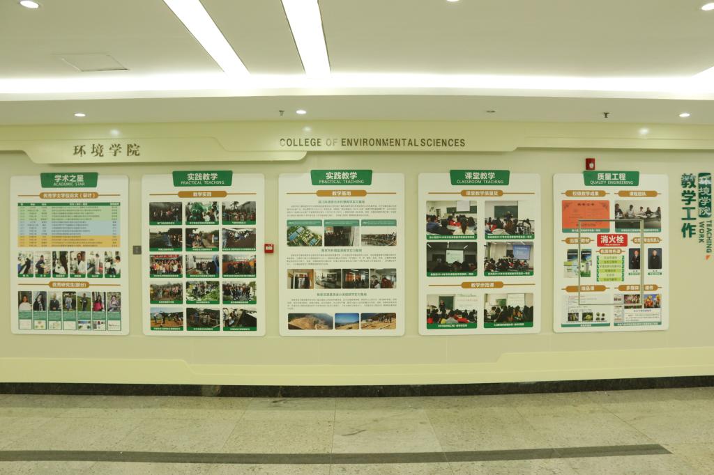 第14周学校迎接本科教学审核评估,为了积极迎评,展示学院文化,彰显学院风采,环境学院与资源学院合作将三教大厅改造为两学院的文化展示厅。
