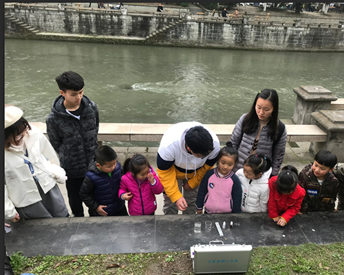 本次活动设置了采样、检测、出检测结果、PH值比对等板块,提供余氯、PH、浑浊度等多项检测项目。现场,大学生志愿者们认真细致检测了水质样品,耐心地向“小小河长”们讲解了水质检测的五项指标及各种水质的不同特点,并与“小小河长”们进行趣味互动,进一步强化“小小河长”们的环境保护意识,充分发挥了志愿者专长,直观生动地将水资源保护、用水安全等相关知识进行传递。经检测,杨柳河水样颜色为浅蓝色,PH值为8.0左右,符合河水管理标准,属于弱碱性水源。