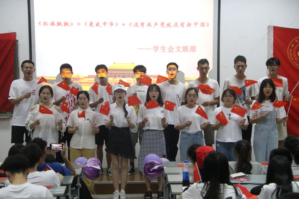 17个学生组织采用朗诵、合唱、舞蹈、手语舞等多种方式歌唱祖国。志工部《起风了(填词版)》,将祖国近年来的蓬勃发展成果融入歌词,表达了新时代青年对祖国的高度赞美;体育部带来的手语舞《国家》,每一个动作整齐划一,用激情高亢的声音传递出对祖国的深情;学生会文娱部的《红歌串烧》、党建办组工部歌唱的《大中国》等,都表现出当代青年对祖国的深深赞美,每一面挥动着的国旗都是对祖国的歌颂。大会最后全体人员起立高唱《我和我的祖国》,将红歌会推向高潮。