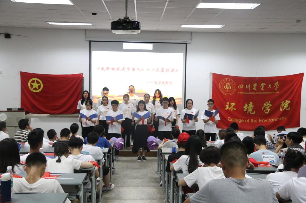 为纪念“五四”运动100周年和建国70周年,环境学院团委于4月26日晚19时在成都校区4教A202开展 “我和我的祖国”红歌会暨“我的青春我的团”学生组织风采展,环境学院党委办公室、团委负责老师及学生干部近300余人参与本次活动。