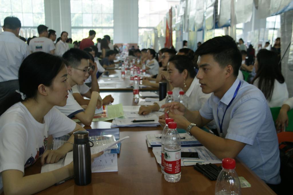 双选会现场十分火爆,毕业生们意气风发,毛遂自荐;用人单位求贤若渴,广纳贤才。炎炎烈日也抵挡不住毕业生们对求职的热情,他们衣着得体,手握精心准备的简历,寻找着心仪的企业单位,与参展企业积极交流,了解招聘信息。双选会的整个会场秩序在学院志愿者的组织和引导下井然有序。此外,参加此次双选会的同学们一致认为,面对严峻的就业形势,积极调整心态,切勿好高骛远,找到合适自己的职位最为重要。与此同时,更应努力学习专业知识,在学习和实习过程中不断提升自我,以更好的面貌面对当前就业形势。