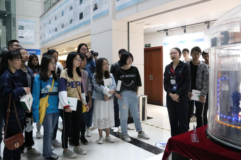 在进行核与辐射安全文化科普展的同时,同学们还参观了站内辐射环境应急监测车、电磁和电离辐射测量仪器设备、分析实验室、低本底实验室等,并且还亲身体验了应急消洗流程,加深了同学们对辐射防护的认识。