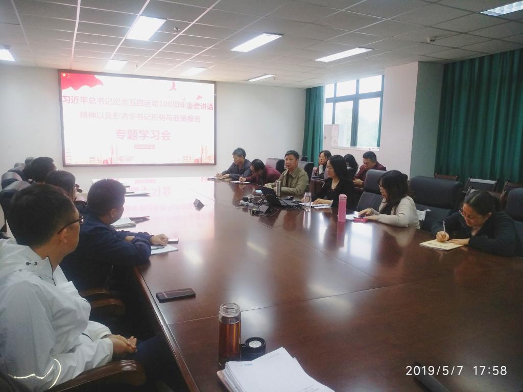 5月7日下午,环境学院在7教305召开专题学习会,学习贯彻习近平总书记在纪念“五四”运动100周年大会上的重要讲话精神,传达彭清华书记来校所作形势与政策报告主要内容。学院党委书记袁志香主持会议。院长张世熔、党委副书记黎明艳及学院全体教职工参加会议。
