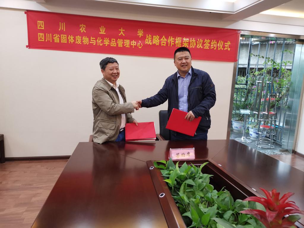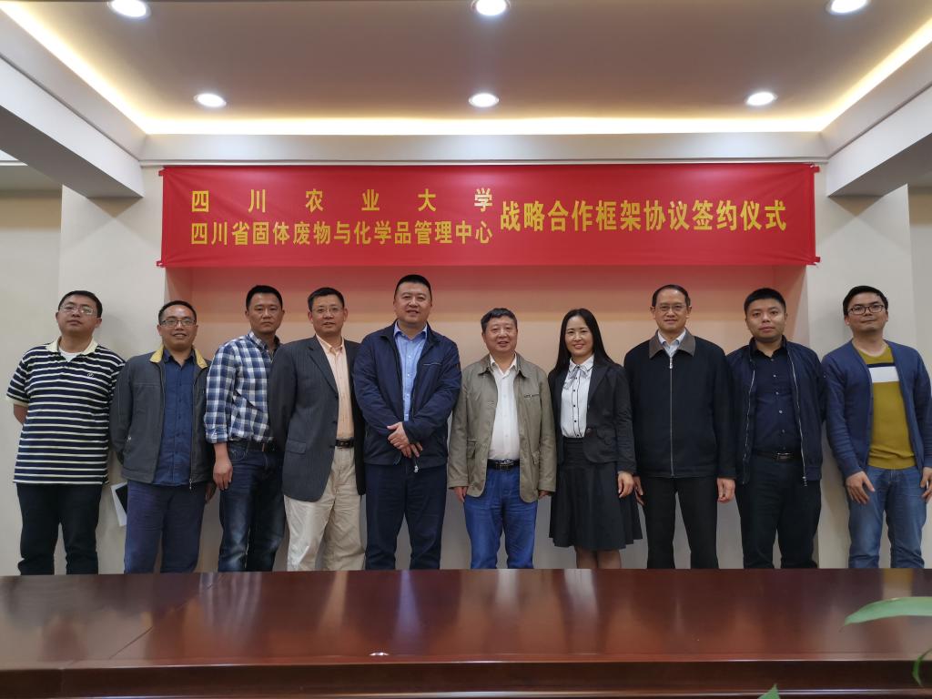 5月6日下午,环境学院院长张世熔、党委书记袁志香、环境科学系主任伍钧及科技开发办公室主任徐小逊一行4人前往四川省固体废物与化学品管理中心,双方签署战略合作框架协议。四川省固体废物与化学品管理中心主任周军、副主任毕朝文及各科室负责人参与签约仪式。