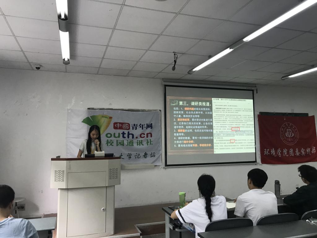 会议伊始,由实践部干事谢华强简要介绍会议流程及通过审核的实践队伍。随后,由新青年通讯社的周蕤涵和蓝馨月进行新闻稿培训,她们从新闻概念,具体内容书写,新闻稿要求,word文档格式,图片要求五个方面进行了具体讲解。紧接着,实践部部长林星妤向大家详细解说了对各团队新闻稿要求、纪律安全问题、后期所需上交的材料以及团队报告册的书写等相关内容。关于暑期社会实践的整体工作,林星妤详细阐述了前、中、后期工作中的容易产生的问题以及相关的解决意见与示例。现场提问环节,就队长对于安全对接、附件等问题所提出的相关疑虑,实践部部长林星妤和副部长杨文昊都一一给予了详细的解答。
