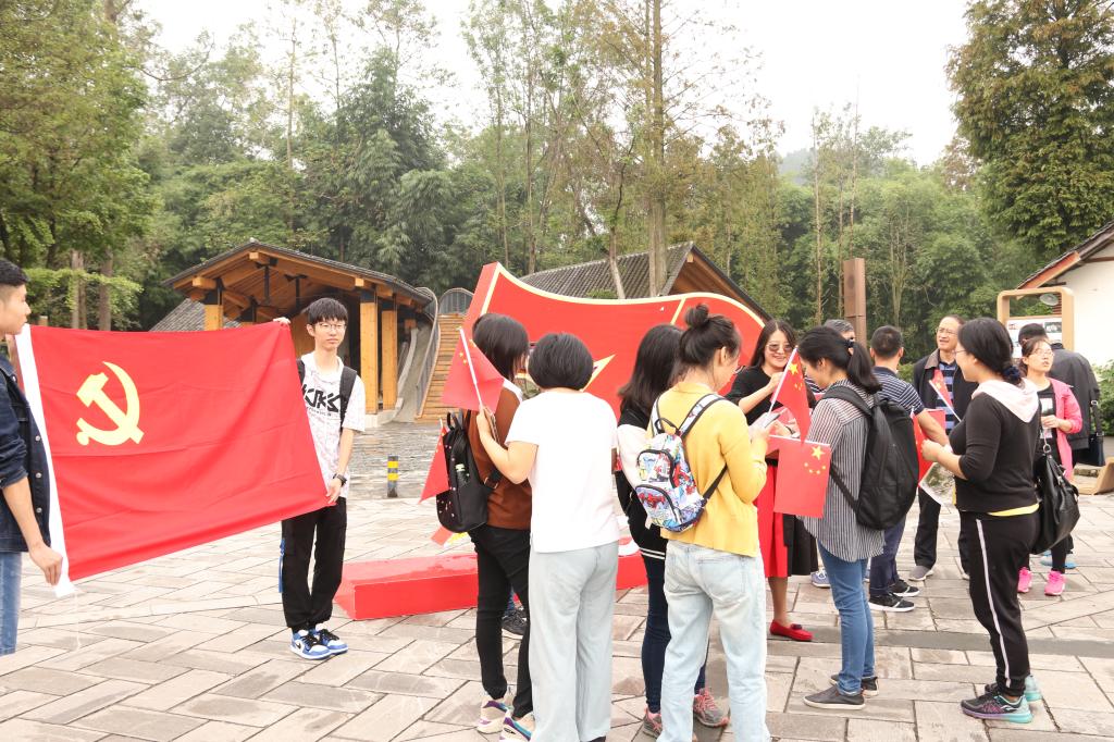 一路上,教职工们徒步前往长马驿站,这里也是四川省林业厅授予的生态文明教育基地,青年教师党员杨刚介绍道:“得益于当地具备的生态景观,从国家到省市都在致力于通过类似的教育基地,促进人与自然和谐价值观的形成。”看到现在农村大地生态景观构建及农村污水处理系统和生态湿地系统,大家作为生态环境学科的教师,一方面从水环境质量角度去分析了当地的水资源情况,一方面由衷感叹新中国成立70周年来农村翻天覆地的变化。