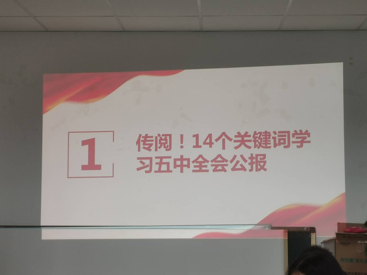 团委学生兼职副书记亓文倩带领大家领读了《传阅!14个关键词学习五中全会公报》、《总书记说的这“三新”点名五中全会公报核心要义》两个文件。就格局机遇,科技经济发展,市场政府关系,工农城乡关系,社会管理,国家及党的发展等多个方面为同学们解读了“14个关键词”,要深刻认识新发展阶段,要全面贯彻新发展理念,要着力构建新发展格局这三个“新”要求。
