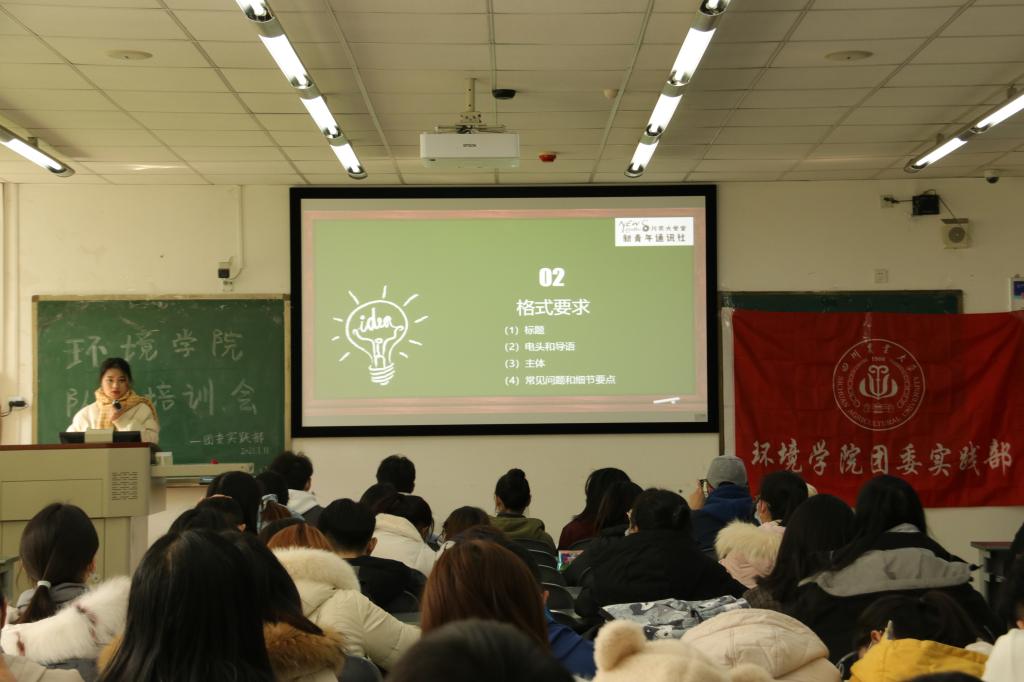 为促进寒假社会实践活动的有效进行、提高实践活动质量、帮助同学提高新闻稿撰写能力,1月11日下午13:00,环境学院团委实践部于4教B409召开2021年寒假社会实践队长培训会。环境学院学生团委兼职副书记亓文倩,学生会执行主席胡鑫出席本次会议,tyc5997太阳集团新青年通讯社受邀为同学们进行培训,实践部干事李雪彬主持本次会议。