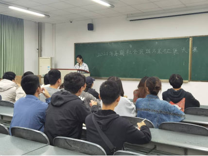 为进一步提高我院实践质量,响应校团委下发社会实践工作“做好、做扎实、有亮点、有特色”的实施号召,2021年7月1日下午16时,环境学院2021暑期社会实践方案征集答辩会在4B207教室举行。环境学院党委办公室张宇老师、环境学院团委实践部部长杨雨婷、团委实践部副部长刘思雨及环境学院2021暑期社会实践领导小组其他成员出席此次会议。
