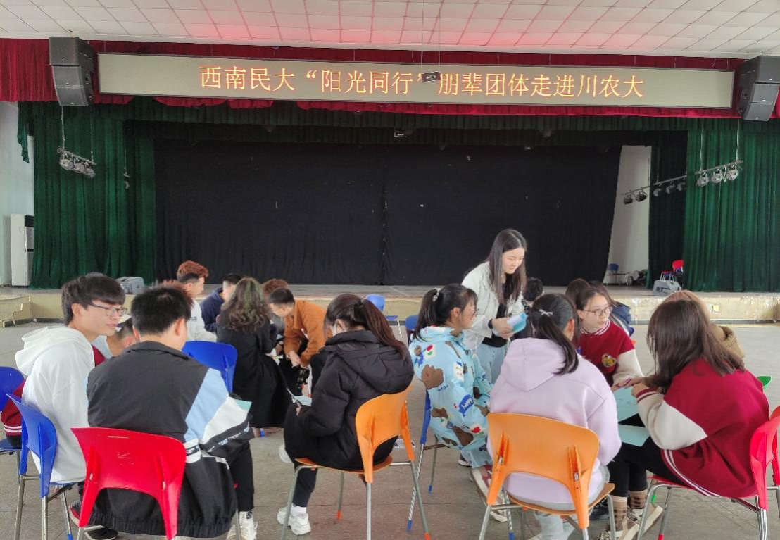 为进一步提升环境学院2022级新生的心理调适能力,帮助同学们融入川农大生活,同时提高班级的凝聚力和归属感,3月24日,环境学院邀请西南民族大学教育学与心理学学院副院长王晓刚团队来校开展了“阳光心理,你我同行”主题心理团队辅导活动。学院党委书记黄成毅、党委办公室主任李晓辉、副主任黄杵睿和300余名本科生、研究生新生参加了此次活动。