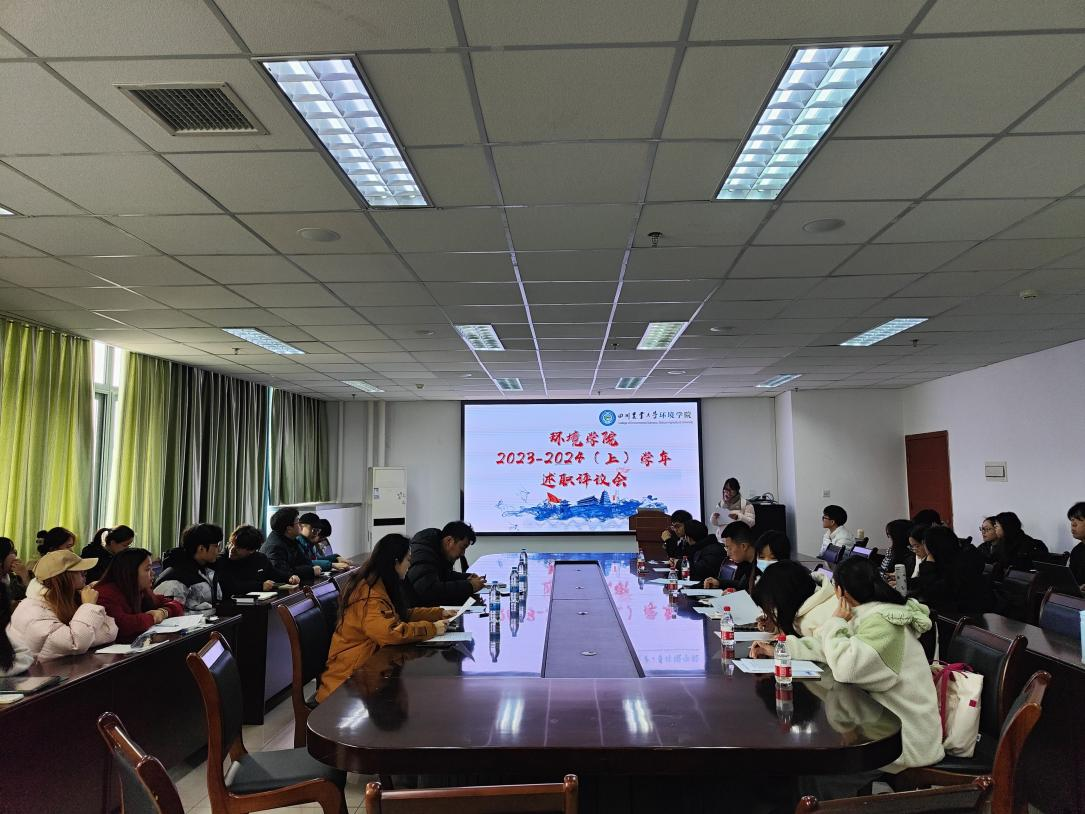 为提高环境学院学生主干的自身素质,完善学生管理制度,有效地开展各项工作,更好地规划建设部门,并使学生主干明确自己的位置,把工作系统化,找出部门与个人存在的不足和差距以达到不断提高学生主干的组织能力和管理能力,环境学院于12月21日中午在7教811室召开了2023-2024上学年学生组织述职评议会。学院党委书记黄成毅、党委办公室老师黄杵睿、谢丽苹及全体学生主干参会。