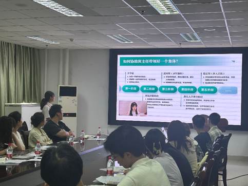 在学院学生会办公室学生干部协助下,党委办公室副主任黄杵睿、党委办老师谢丽苹、江芹通过分享优秀班助工作经验、带领分组讨论等形式,对2024级全体新生班主任助理进行了业务培训。