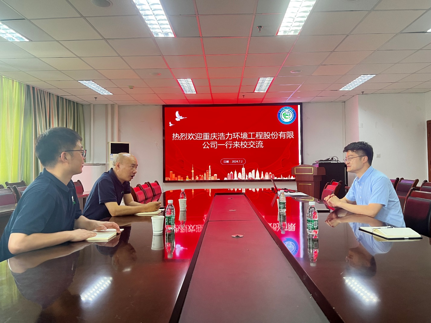 7月2日下午重庆浩力环境工程股份有限公司(以下简称“浩力环境”)董事长康林及人事经理孙攀来校商讨院企合作事宜,并与学院党委书记黄成毅及党委办公室老师江芹就深化校企合作及协同育人工作,进行深入交谈。