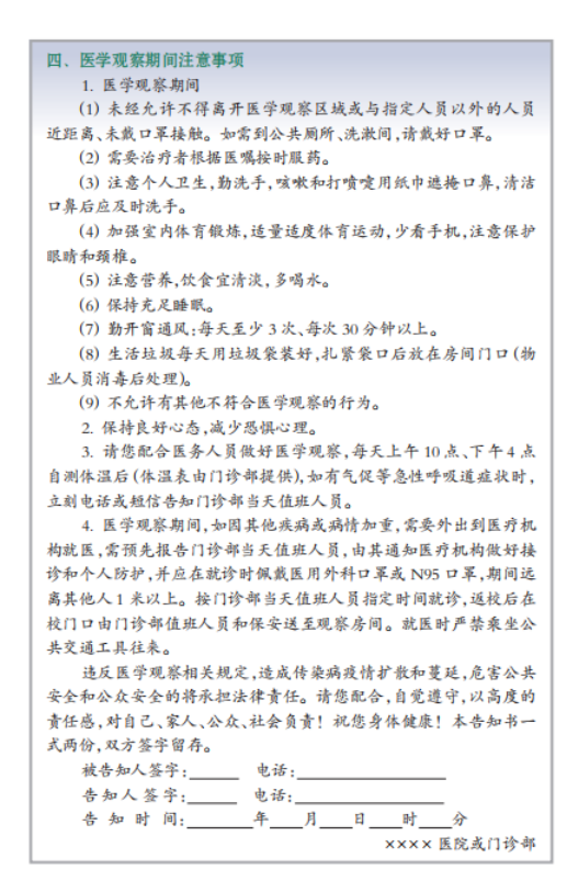 体温恢复正常3天以上;呼吸道症状明显好转;肺部影像学显示急性渗出性炎症明显改善;连续两次呼吸道标本核酸检测阴性(采样时间间隔至少1天)。满足以上条件可解除隔离出院或根据病情转至相应科室治疗其他疾病。患者出院后仍有其他病原体感染风险,应继续自我监测和隔离2周,并于出院后第2周和第4周回医院复诊。