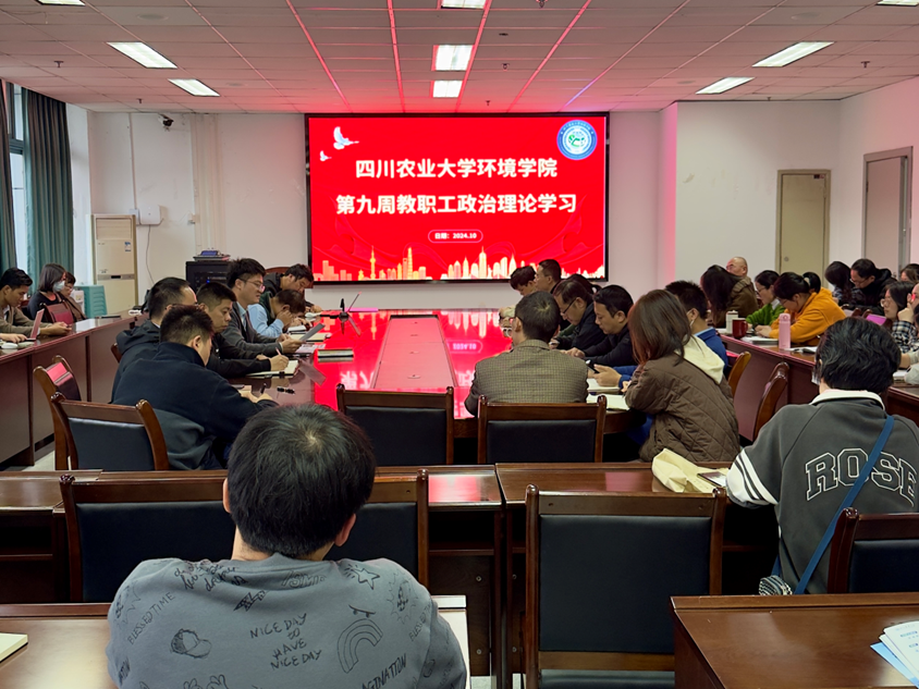 10月29日下午,环境学院于3教423B会议室召开教职工政治理论学习大会,全体教职工参会,党委书记黄成毅主持会议。