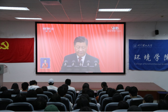 我院学生主干和学生党员于成都校区4A102室集中收看了中国共产党第二十次全国代表大会直播,聆听了习近平总书记的重要讲话。大家备受鼓舞,纷纷表示要在新的征程上为国、为党做出积极贡献。学院党委书记黄成毅说道:“从习近平总书记对过去十年工作和历史变革的总结中,感受到国家方方面面所取得的重大成就和全方位变革,带来了强大的民族自豪感与自信心。在感受祖国发展变化的同时,更坚定了自身的责任和使命,将继续落实立德树人根本任务,紧密围绕学院环境专业特点,引导学生将个人抱负融入中国梦想,融汇在建设天蓝、地绿、水清的美丽中国这一事业追求中。”
