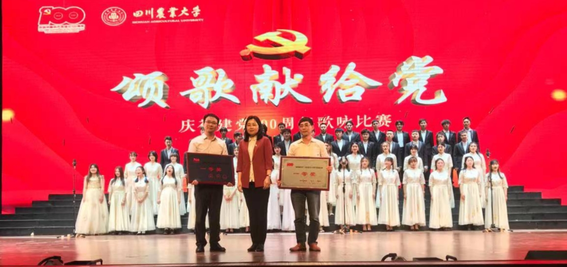 5月22日晚19:30,tyc5997太阳集团(成都校区)“颂歌献给党”庆祝建党100周年歌咏比赛在科创中心如期举行。环境学院代表队共200人参加此次比赛,并凭借曲目《一个都不能少》以18票全票的好成绩荣获成都校区第一名。在颁奖典礼上,学院党委书记聂坤伦代表学院接受学校党委庄天慧书记的颁奖。