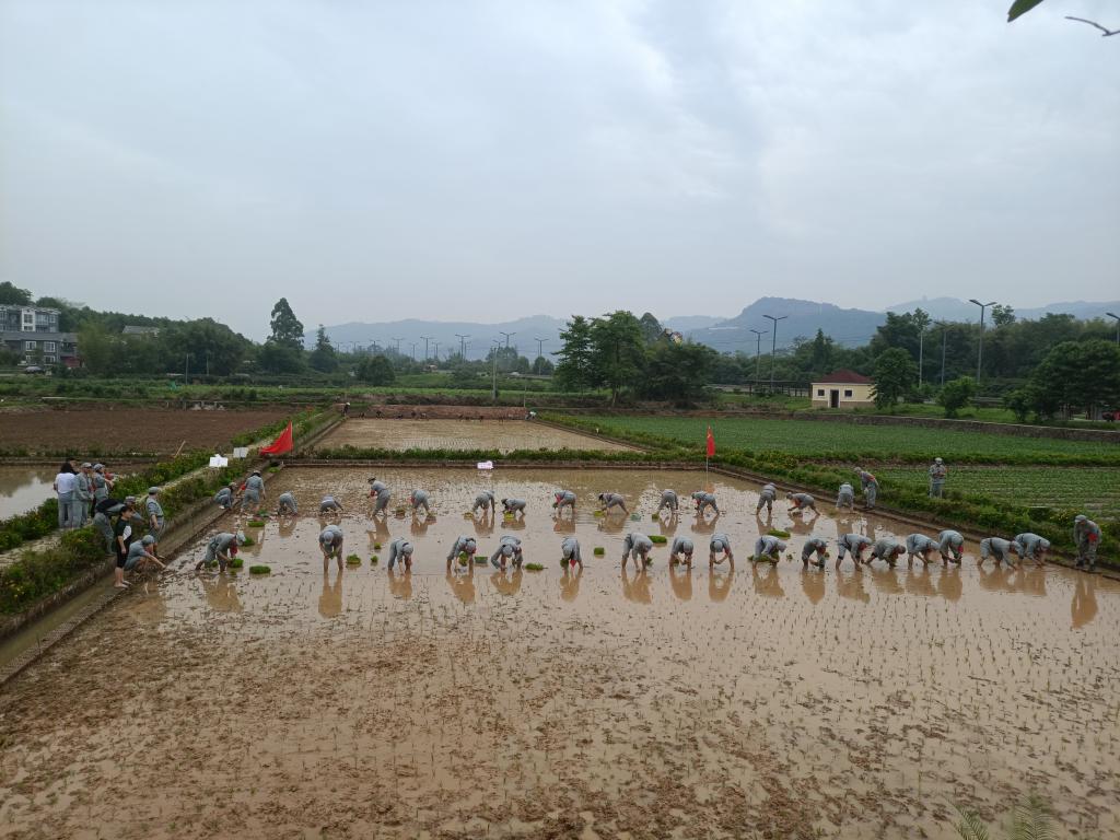 活动中同志们挽起袖子,卷起裤脚,脱下鞋袜,下到水田地里开展插秧活动。捆秧、运秧、散秧、拉线、撑降盆、插秧……放眼望去,构成一道独特靓丽的风景线,引来当地村民们的啧啧称赞。值得一提的是,此次活动选用的水稻品种是我校西南作物基因资源发掘与利用国家重点实验室陈学伟教授团队选育的具有优质高产、抗病性强、重金属低富集等特性的三系杂交稻新品种川优6709,并且由我校农艺与种业专业硕士研究生李珍珍现场见讲解、指导,让非农专业的师生党员和非农行业的党员同志了解并亲身体验水稻从育秧、整田,施肥以及后期病虫害防治等水稻全过程高产栽培模式。插秧结束后,每个支部均在插秧区都立下支部标志,以待收获环节看看自己亲手种的成果。