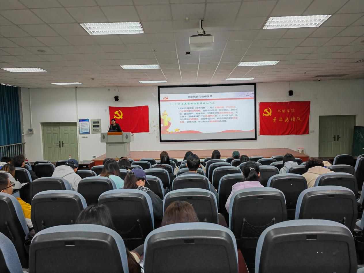 为加深入党积极分子对中国共产党光辉历程的了解,推动入党积极分子继承和发扬党的优秀传统和作风,3月24日16点10分,环境学院党委委员聂坤伦在4教A102教室以《中国共产党的优良传统和作风》为题为本期64名入党积极分子讲授第四期党课,环境学院2023年春季入党积极分子培训班全体学员参与学习。