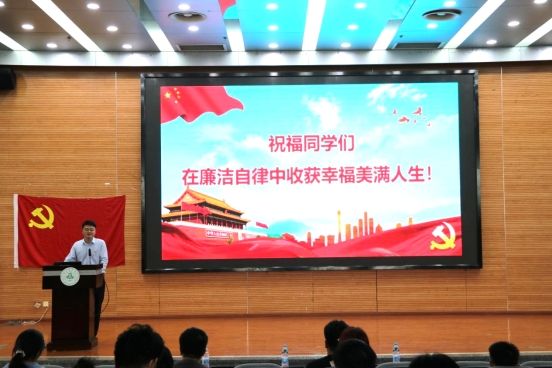 黄成毅以“守廉洁从业初心,筑辉煌人生前景”为主题,紧紧围绕主题教育“学思想、强党性、重实践、建新功”的总要求,结合敬业精神,为民情怀,法治意识,干事创业激情等开展毕业生党员廉洁从业教育。他从环保执法、贪污受贿、渎职问题、监管对象等四大类三十余项廉政风险点向党员们详细地讲解了常见的环保领域廉洁可能的从业风险。他强调在奋进中国式现代化的新征程上“廉洁是对从业人员的基本要求,更是个人立身、行事,事业可持续发展的基本准则”,他要求毕业生党员坚定政治理想,把握政治方向,认清全面从严治党新形势新要求,深刻认识党以伟大自我革命引领伟大社会革命的历史经验,不断增进全面从严治党的政治自觉,在未来的工作岗位上秉承发扬“爱国敬业、艰苦奋斗、团结拼搏、求实创新”的川农大精神,持续学习贯彻习近平新时代中国特色社会主义思想,为全面建设社会主义现代化国家和全面推进中华民族伟大复兴而团结奋斗。