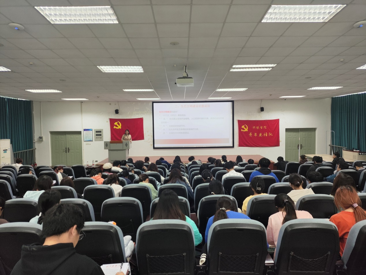 为深入学习贯彻落实习近平生态文明思想,统筹推进“五位一体”总体布局、协调推进“四个全面”战略布局,继承和发展新中国生态文明建设探索实践成果。10月24日中午,环境学院秋季入党积极分子第二期党课培训在4教A102召开。学院党委委员、环境生态工程教工党支部书记、环境生态工程系副主任王莉淋,以《生态文明建设,我们在路上》为主题,为全体入党积极分子讲授了一堂精彩的党课