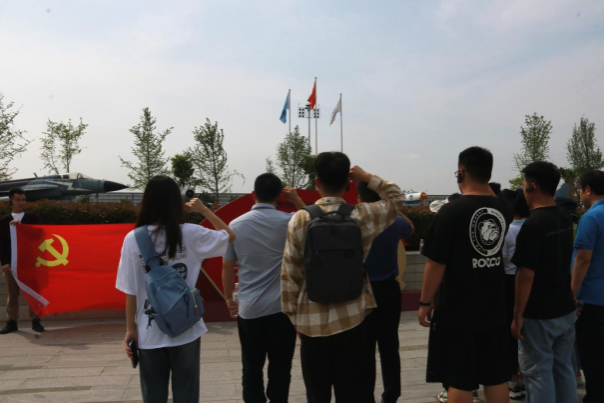 结合成飞公园系列场馆特色科普资源,在专职讲解员的详细讲解下,师生党员一行深入了解了我国航空事业发展史,普及了世界各国战机风采及航空知识,并身临其境地参观了基地所展陈的歼5、歼7、枭龙、歼10、歼20系列等战斗机及翼龙、天翅系列等无人机,更加深刻地体会到国防建设在护航国家安全和社会经济发展的重要保障作用。活动中,师生党员同志们以“国家安全 你我同行”为主题,围绕当前国际国内形势、总体国家安全观、“百年变局”“国之大者”“护国重器”及师生如何践行总体国家安全观等方面开展了热烈的讨论,并结合近期国际相关事件和案例,理解和感悟深入学习总体国家安全观、严守国家秘密和共同守护国家安宁的极端重要性。在党课的尾声,黄成毅为过政治生日的党员同志发放了政治生日贺卡,并带领师生党员在巨大的歼20样机前庄严宣誓,面向鲜红的党旗,高举右手,重温入党时的志愿,牢记入党时的初心。