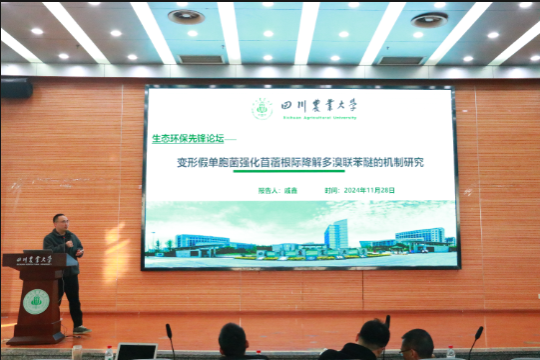 戚鑫副教授以《变形假单胞菌强化苜蓿根际降解多溴联苯醚的机制研究》为题,介绍了微生物强化植物环境修复的成果,提供了电子废弃物回收利用新的路径。12位不同年级的硕士研究生同学从多个研究方向,探讨了热门的污染处理技术、农业废弃物资源化方案、种植业温室气体排放、土壤有机碳固存路径、新污染物处理等问题。与会同学还根据自己研究的方向与困惑向报告者进行了提问交流。