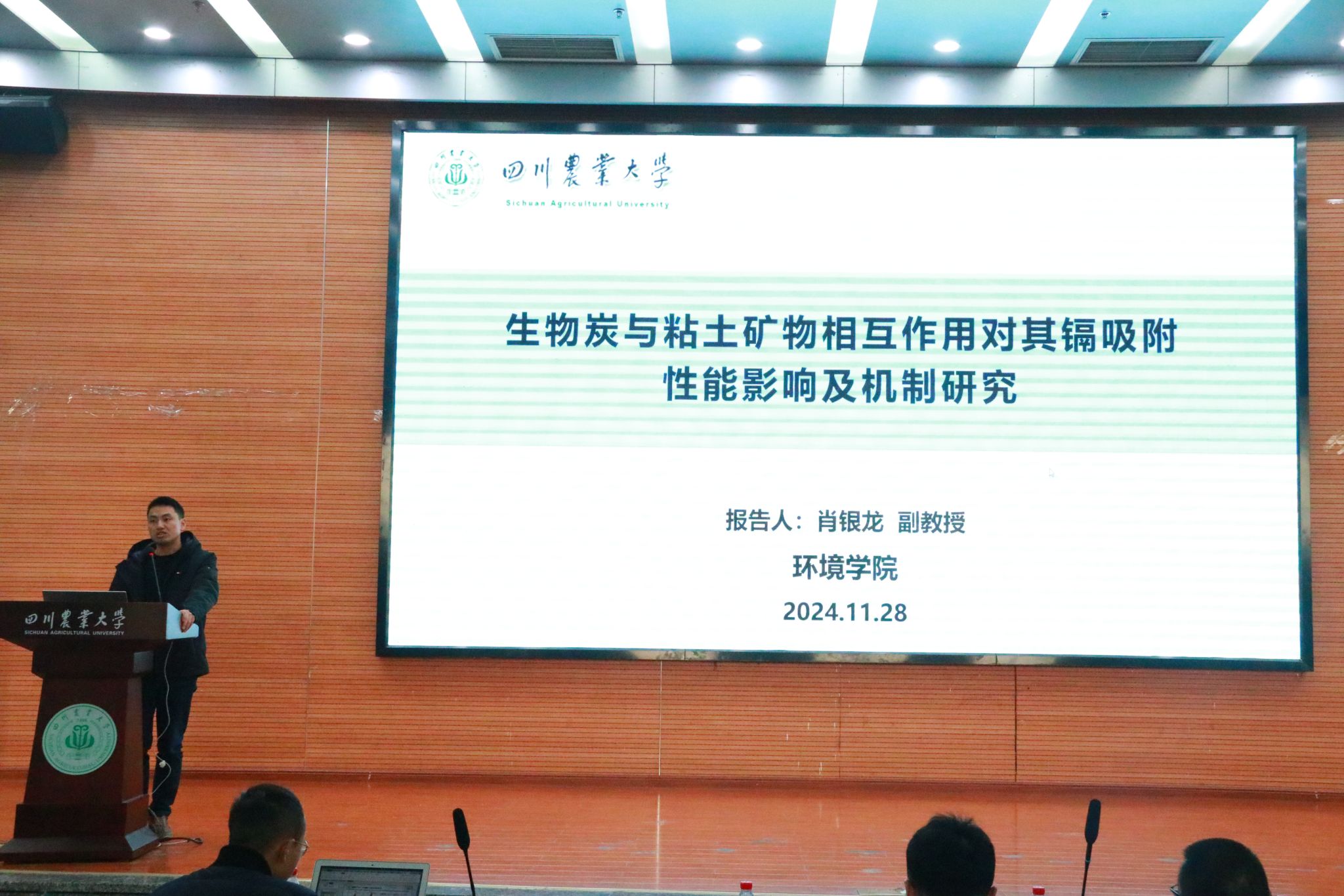 肖银龙副教授以《生物炭与粘土矿物的相互作用对生物炭理化性质和镉吸附能力影响研究》为题,讲述了生物炭-粘土矿物对重金属镉吸附的作用机制并进行探讨。