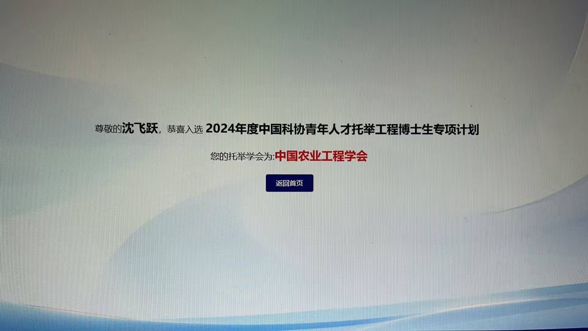 近日,中国科学技术协会公布了首批青年人才托举工程博士生专项计划的入选名单。经个人申报、学院和学校遴选推荐,中国科协组织专家评审及学会审定等严格程序,我院沈飞教授指导的废弃物处理与资源化利用方向博士生沈飞跃成功入选该计划,依托的托举学会为中国农业工程学会。