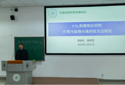 曾振兴副教授以《CO₂刺激响应材料介导污染物分离回收方法研究》为题,重点介绍了团队关于CN的CO₂刺激响应系统的研究进展及研究思路与成果。并对团队已构建的三类CO₂刺激响应系统进行了详细的阐述以及未来的展望,充分启发同学们对无二次污染和资源化回收相结合在实际运用中的思考。