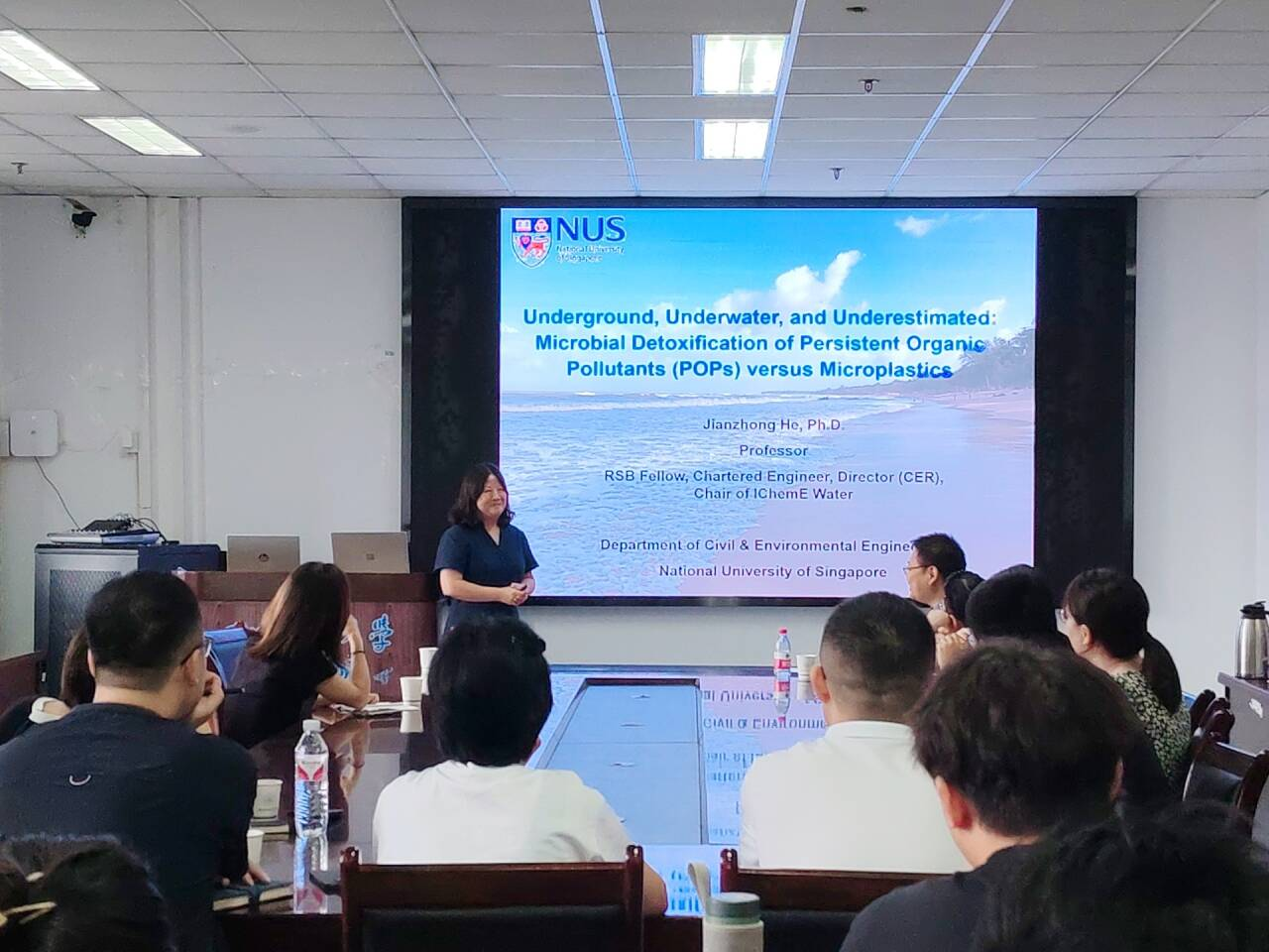 2025年7月8日上午,环境学院特邀新加坡国立大学土木与环境工程系的He Jianzhong(何建中)教授到访我院,并于三教报告厅作题为“Underground, Underwater, and Underestimated: Microbial Detoxification of Persistent Organic Pollutants (POPs) versus Microplastics.”的学术报告。40多名师生聆听了报告,报告会由环境学院院长沈飞教授主持。