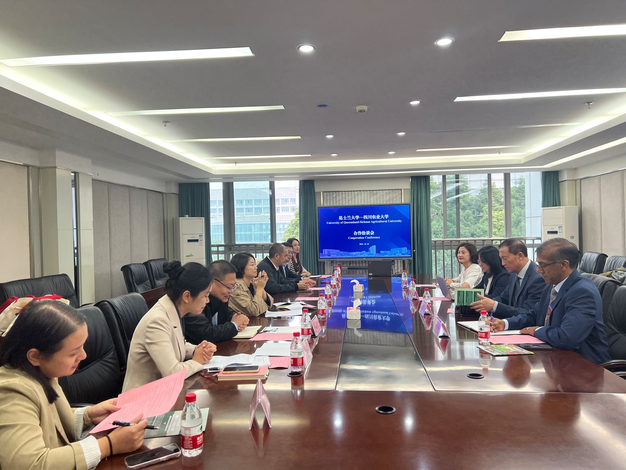 10月23日,我校副校长卢艳丽教授在成都校区会见了澳大利亚昆士兰大学副校长李荣誉和食品学院院长Sagadevan Mundree一行,我校食品学院院长方正峰教授、环境学院副院长沈飞教授、教务处副处长李伟教授、生命科学学院和国合处相关老师参与座谈,座谈会由国际交流合作处副处长李悦教授主持。